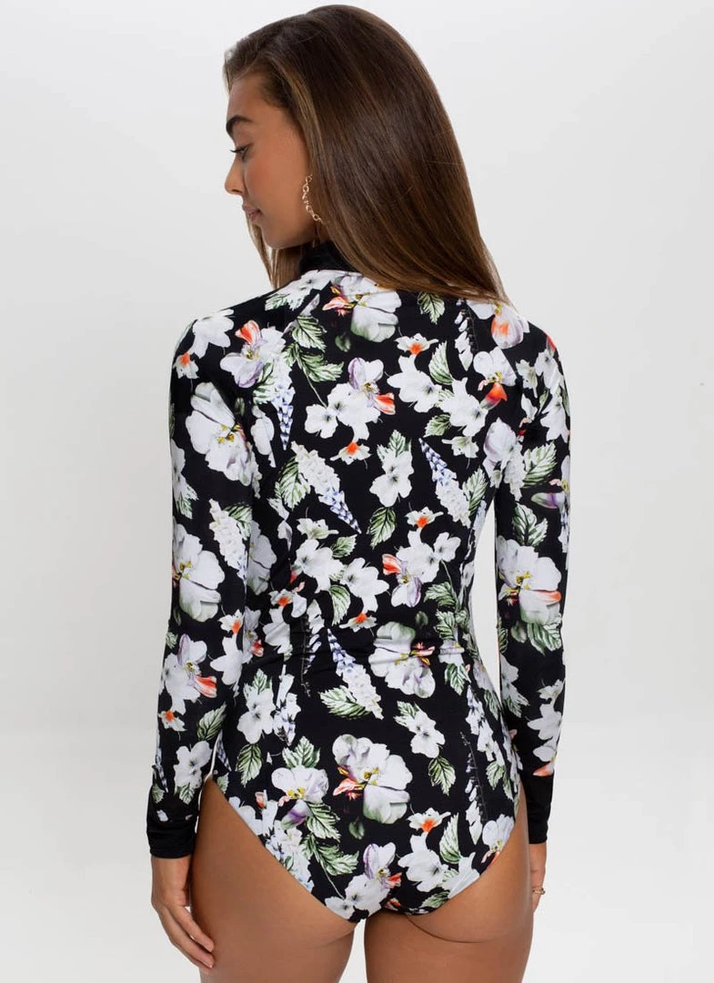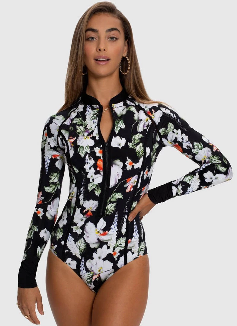 The Arcadia long sleeve one-piece by Aqua Blu Australia is made from beautiful, soft and fully lined material. The print and structured black seams make this a really flattering style.