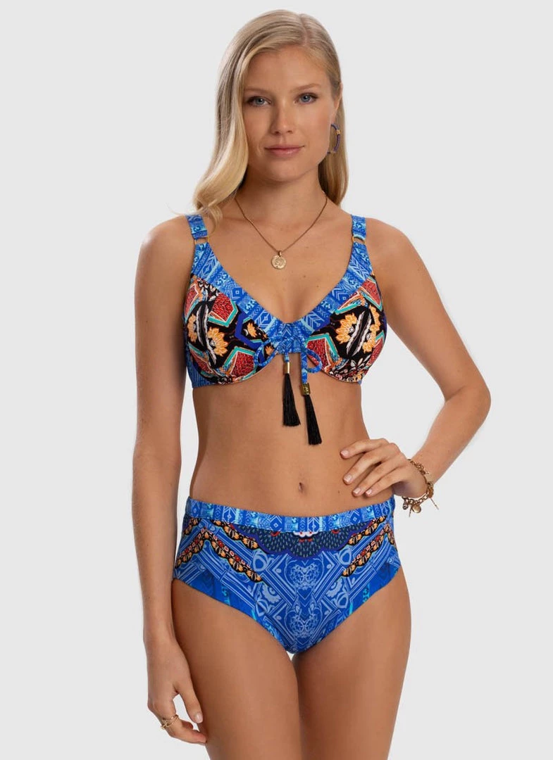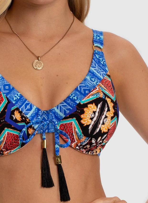 The Nemean DD/D Cup Bikini Top by Aqua Blu Australia embodies a minimalist design with wide adjustable shoulder straps and a back clasp. The ultra-soft luxury fabric, removable cups and underwire support are designed to shape and support the body.