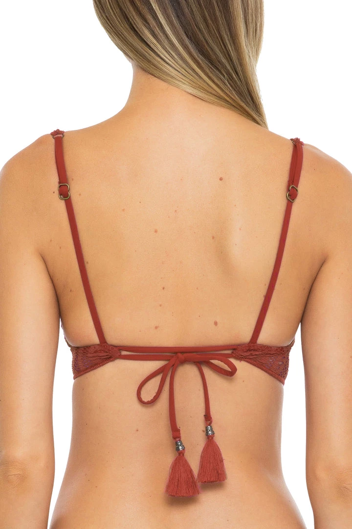 -LONGOVER THE SHOULDER HALTER TOP TASSELS W/ ETCHED BEADS