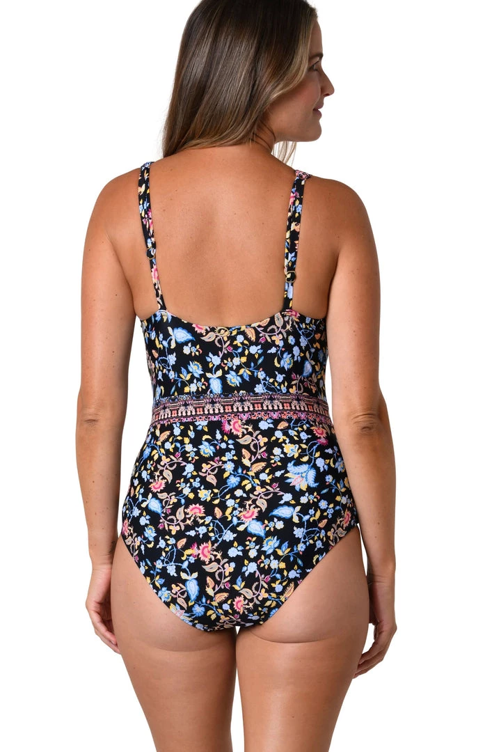 Our Budding Border Plunge One Piece features a flattering plunging neckline with contract print trim. The suit features built in underwire and removable cups that provide both support and a flattering shape while a tummy control panel creates a slimming silhouette. Added comfort can be found in the no slip bottom.