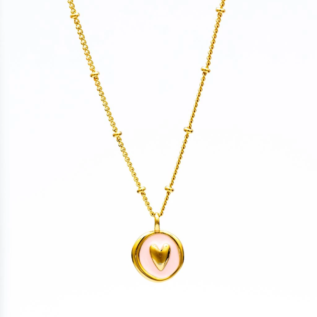 Pastel enamel heart pendant in pink on a delicate, gold-plated ball detail chain. Measures 50 cm (pendant measures 11mm)
