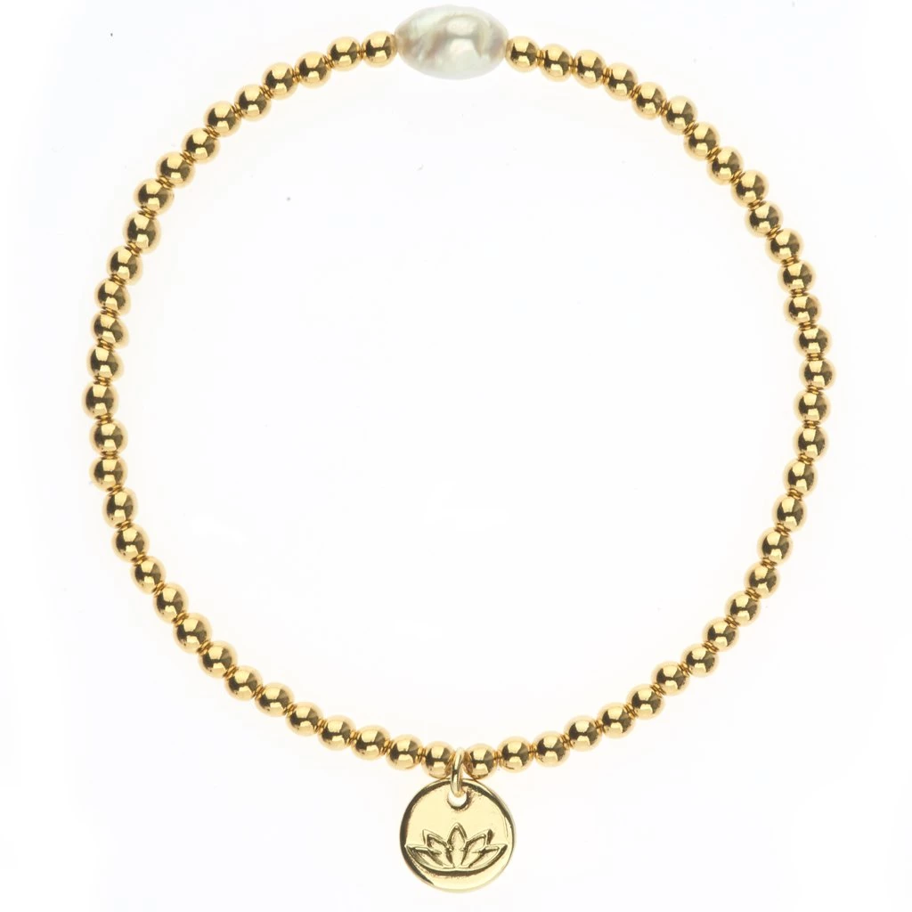 Gold-plated ball stretch bracelet with a freshwater pearl.