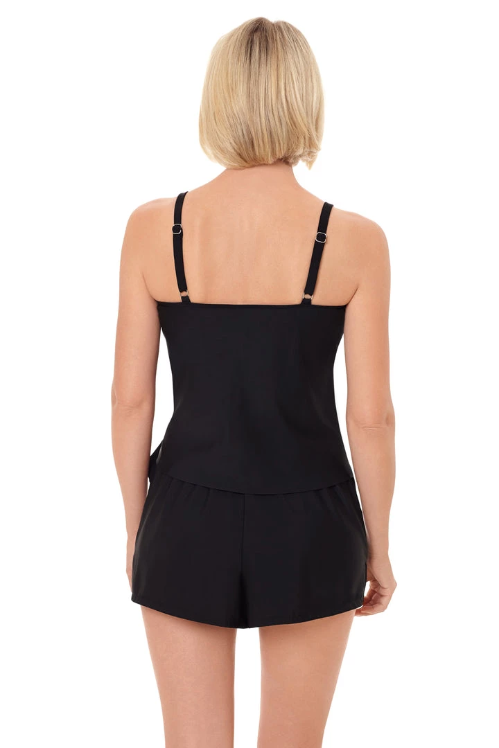 Penbrooke solid wrap swim Romper, a full one piece underneath with a light drape-y fabric overlay and side tye. Wear it to the beach – or wherever!