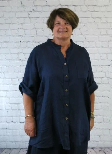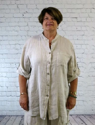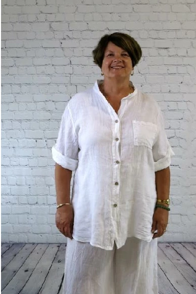 Beyond Capri 100% linen button down 3/4 sleeve beach shirt. Breast pocket.