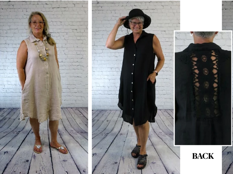 SLEEVELESS BUTTON UP VEST/DRESS WITH CROCHET BACK PANEL