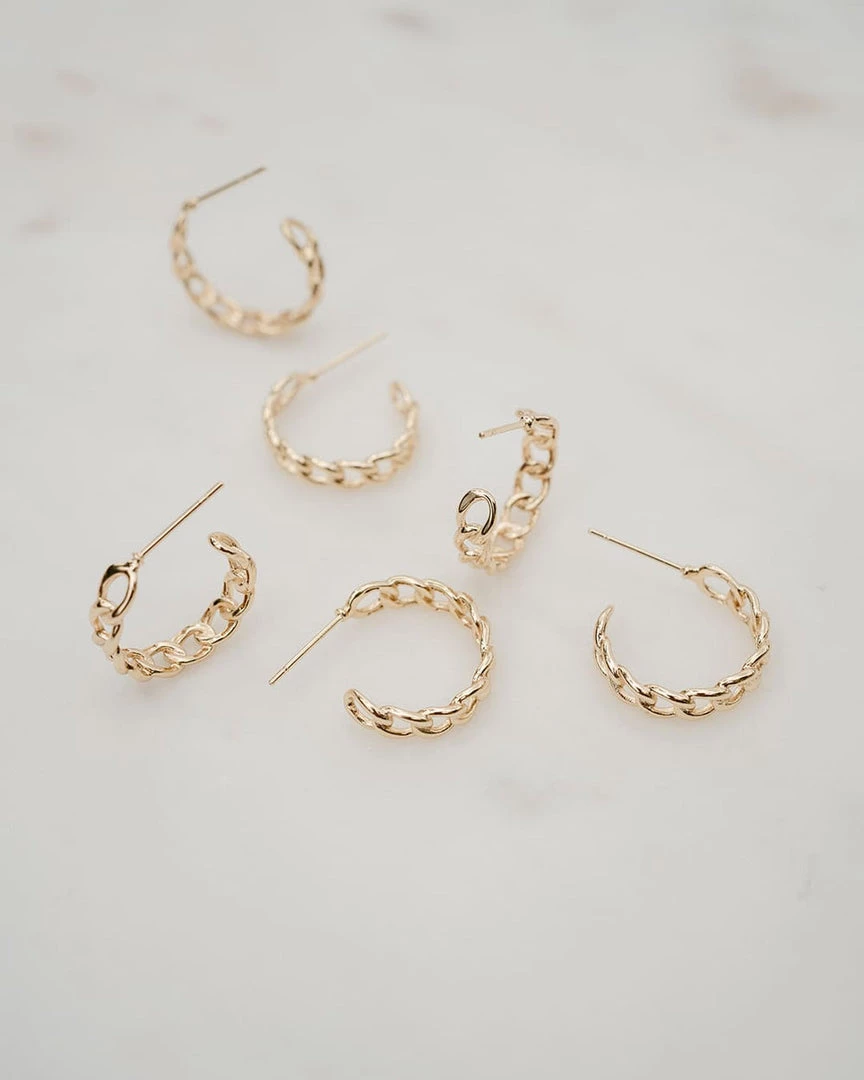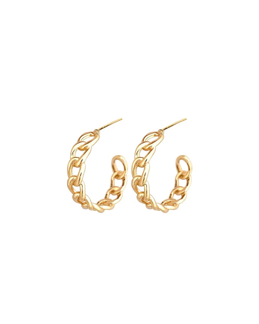 Cubano gold earrings are small chain hoops. They feature 5mm wide 24K gold plated curb chain links.