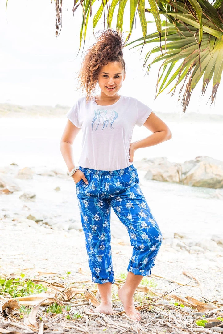 I love the perseverance of mummy turtles who swim thousands of miles to lay their eggs on the beach of their own birth…. lockdown sure has dealt us a share of perseverance, so these cute mummy turtle pants are designed in their honor. Lightweight breathable and so cool to wear, our TURTLE BEACH PANTS are an adorable loose comfortable pair of pants that you will find SO comfortable. They are also perfect to wear over your swimsuit on the beach.