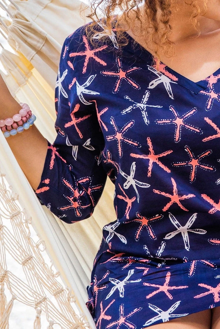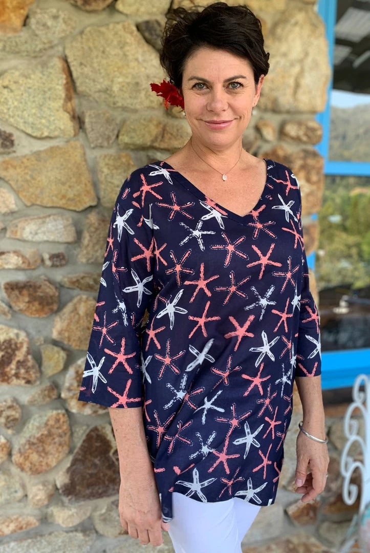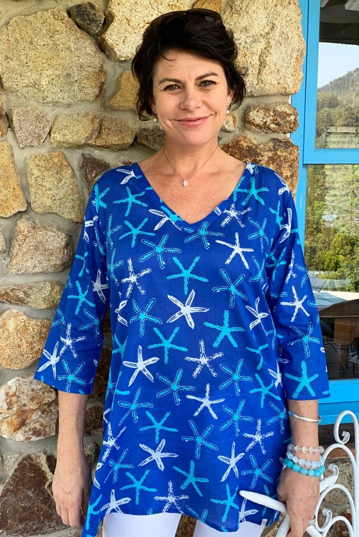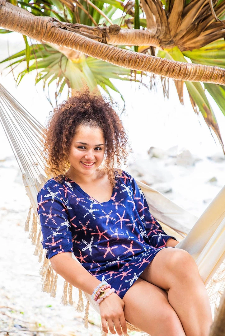 Imagine yourself relaxing under a beach umbrella sipping an ice cold cocktail. Watching the world go by in the pure cotton comfort of our MERMAID TUNIC. I guess for the time being most of us will have to settle for “imagining this scene” from the summer of lockdown.