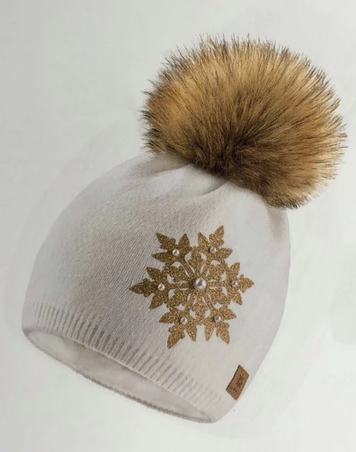 WOOLK ELZA POM HAT WITH GLITTER SNOWFLAKE PRINT